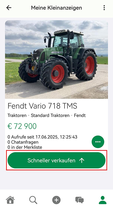 - Anschließend wählen Sie bei der gewünschten Kleinanzeige den grün hinterlegten Button "Schneller verkaufen".