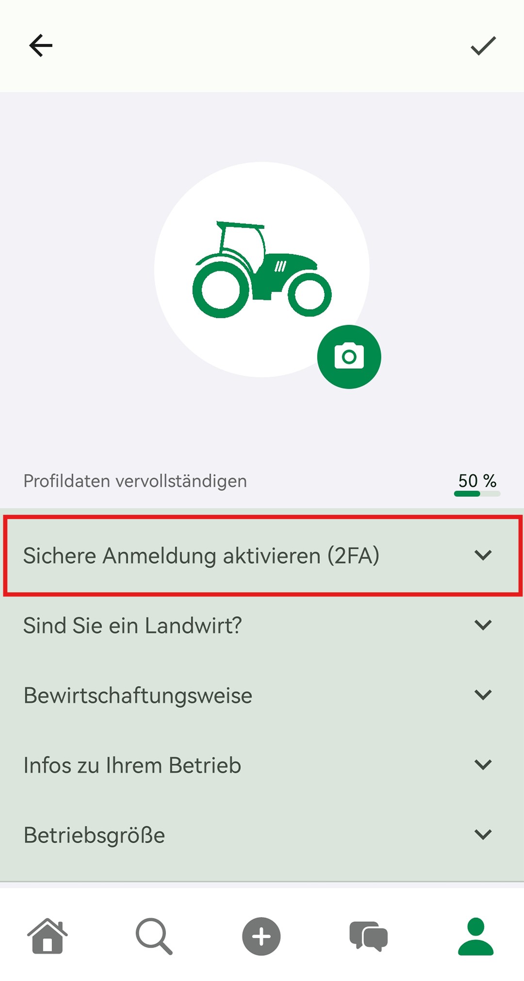 - Loggen Sie sich mit Ihren Zugangsdaten in der Landwirt.com App ein.